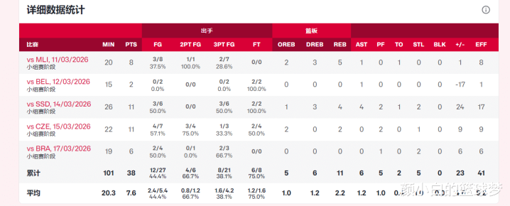 在刚刚结束的女篮世界杯资格赛,罗欣棫场均20.3分钟,拿到7.6分2.2篮板1.2助攻1抢断,命中率44.4%,三分命中率38.1%,在她可以进行更单一的工作(三分、防守)时她的功能性就更为明显,不得不说宫鲁鸣慧眼识珠。